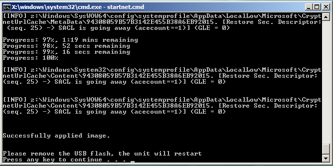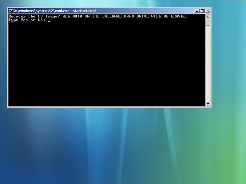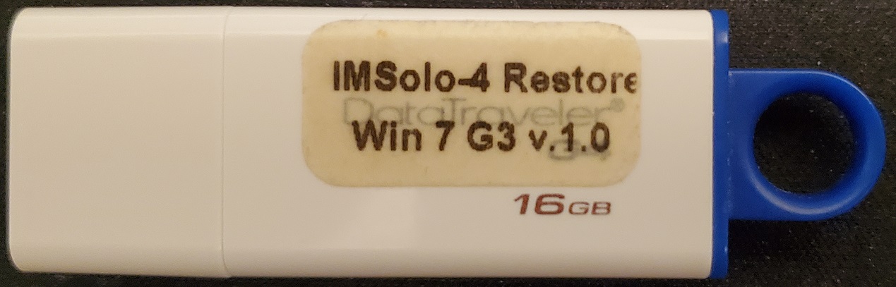 Restoring the Original Windows Embedded OSThe following photo shows the RESTORE USB drive that came with my Im Solo-4 G3 unit (labeled as Win 7 since Embedded Standard was based upon that OS and in fact includes all the Windows 7 background Themes and other items from that OS): This is what you would need to use after replacing an original physically damaged HDD, upgrading the boot drive to an SSD or simply needing to overwrite the OS if its boot files have become corrupted. Except for needing to confirm that you actually want to overwrite all the contents of the connected disk drive, the process is automatic. NOTE: You must enter the full word Yes (which is case sensitive!):